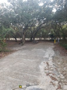 This is a 50′ campsite that features a large concrete driveway and an extremely large campsite area. It sits directly along Shore Drive with full view of the fence and the several campsites across the street from it.